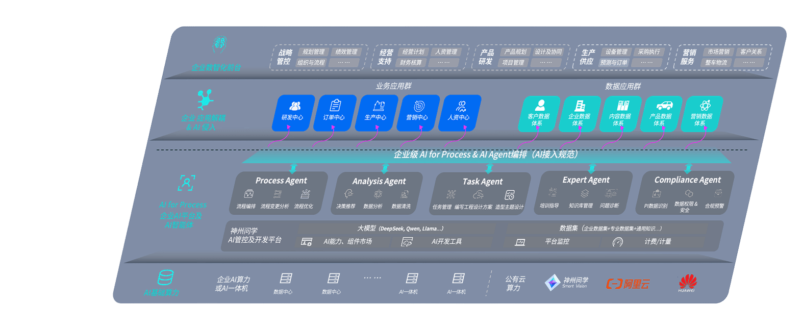 迪威国际问学智车解决方案是一套基于AI技术的汽车行业智能化系统,,,,覆盖从底层算力到顶层AI应用的全栈方案。。方案由算力层、、、模型层和应用层组成:算力层,,方案支持多种一体机配置,,,具备云端灵活部署、、多云适配以及动态优化计算资源的能力;模型层,,迪威国际问学平台版提供了企业级AI应用一站式构建与管理平台,,支持基于后训练强化技术的汽车企业专属模型的训练、、评测和运营;应用层,,迪威国际问学DeepSeek版提供包括超级员工、、智能招采、、、、智能营销、、、智能客服、、、、AI for BI等一系列解决方案,,可助力汽车行业实现数字化转型,,,,让管理更智能、、、响应更敏捷。。