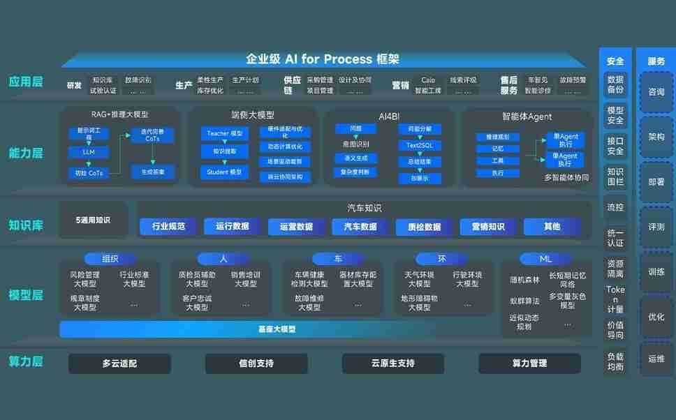 端到端的一站式AI工作空间深度融合了从企业战略规划到日常经营的全流程业务板块,,,定向解决车企内部领域多、、、、部门多、、、链条长、、、场景碎片化等难题,,,,支持车企快速构建以AI为核心的生产力写作体系,,实现任务执行与AI能力的无缝集成与交互