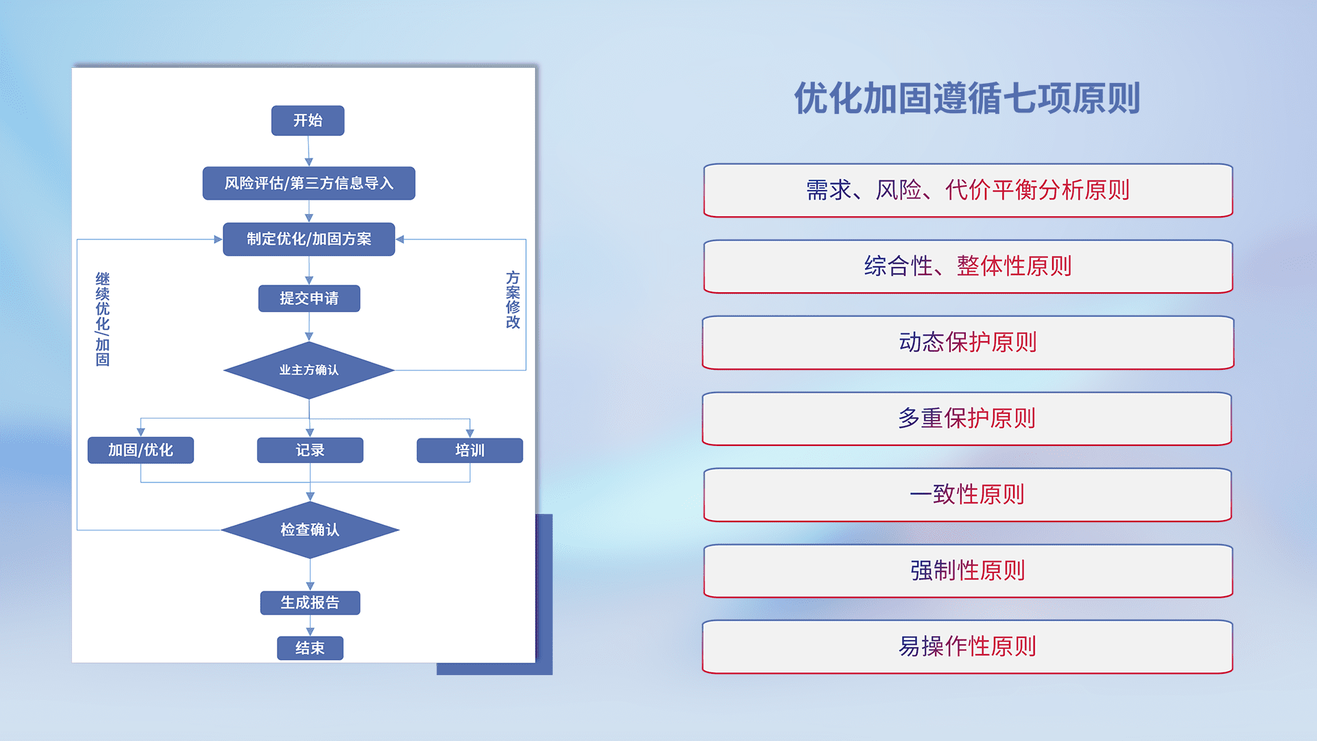 最大程度利用现有资产,,,,对评估发现的问题进行封堵与整改,,,防止漏洞被利用,,,提升整体网络安全性,,,,为客户带来高标准的优化加固服务。。