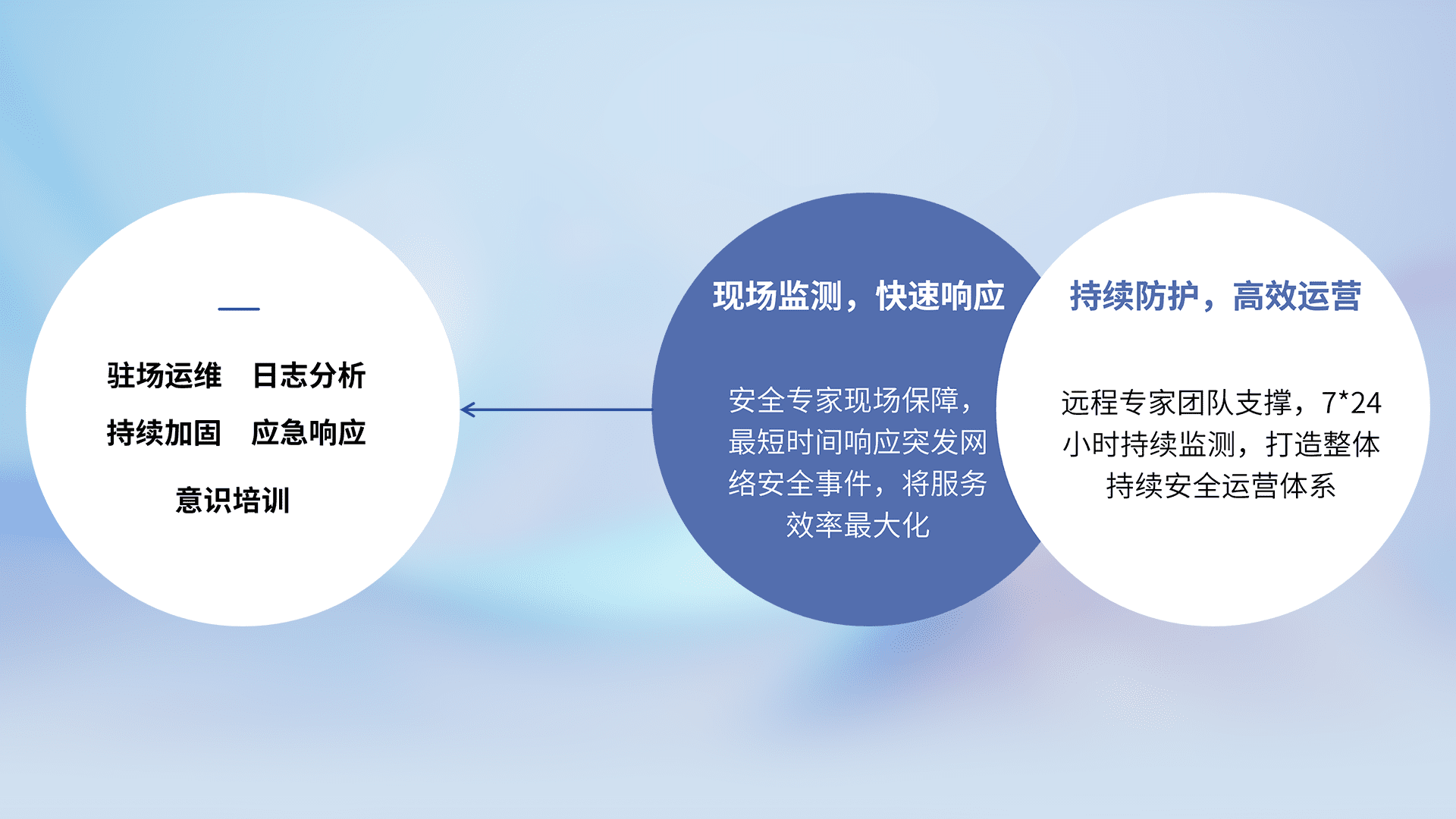 7X24小时持续监测安全事件,保持安全策略有效性,降低资产脆弱性风险,,,,精准拦截黑客攻击,,减少被黑客利用的机会,,第一时间遏制,,,降低损失。。
